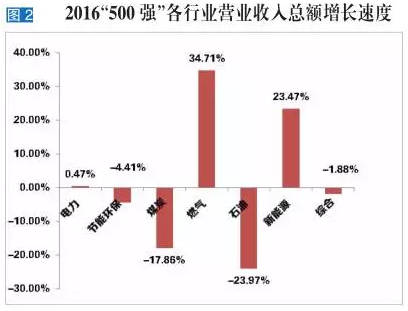 与传统能源行业发展迟滞相比,新能源行业成绩靓丽。2016中国能源集团500强中,新能源行业占据了92席,比上届增加17家,增幅位居各细分行业榜首。盾安控股集团有限公司风电、光伏板块2015年收入51.64亿元人民币,排名49,成为首家晋级前50强的新能源企业,打破了历届传统能源企业对前50强的垄断。