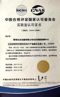 设立于天合光能光伏科学与技术国家重点实验室内的光伏系统检测中心,多年来致力于逆变器、户外发电量、电站工程等检测工作,为公司产品系统终端性能评价提供了有力保障。此次光伏系统检测中心获得国家CNAS实验室认可资格,将进一步增强客户对天合产品的认可度和满意度,有利于提升与认证机构的合作度。